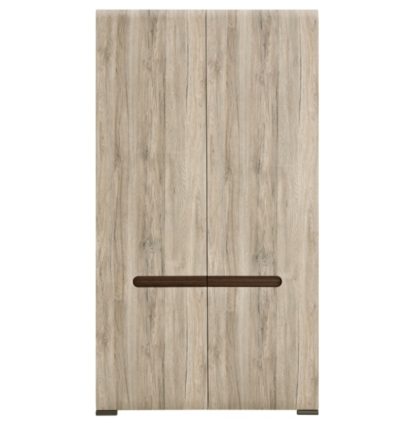 2 распашные глухие двери, за которыми в верхней части расположена 1 ниша и штанга стационарная металлическая для одежды и в нижней части расположена 1 ниша;