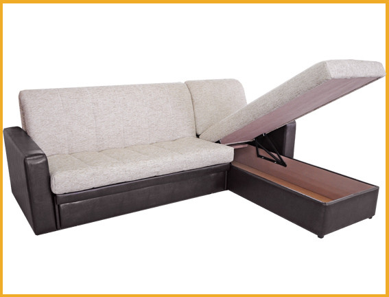 Современный стиль. Ровное спальное место. В основании дивана металлический каркас с поддерживающими деревянными латами.  Матрас на эластичном ППУ. Спальное место формируется следующим образом: цокольная часть сиденья выдвигается вперед до упора, спинка, состоящая из сложенного листового пенополиуретана, раскладывается. Для удобства присутствует задняя спинка в режиме спального места. Возможность использования в качестве центрального объекта интерьера. Для трансформирования не требуется расстояние между стеной и диваном. Диван изготавливается как с левым, так и с правым расположением оттоманки. В коробчатом основании дивана (оттоманке) расположена емкость для хранения постельных принадлежностей. Механизм трансформации «аккордеон».