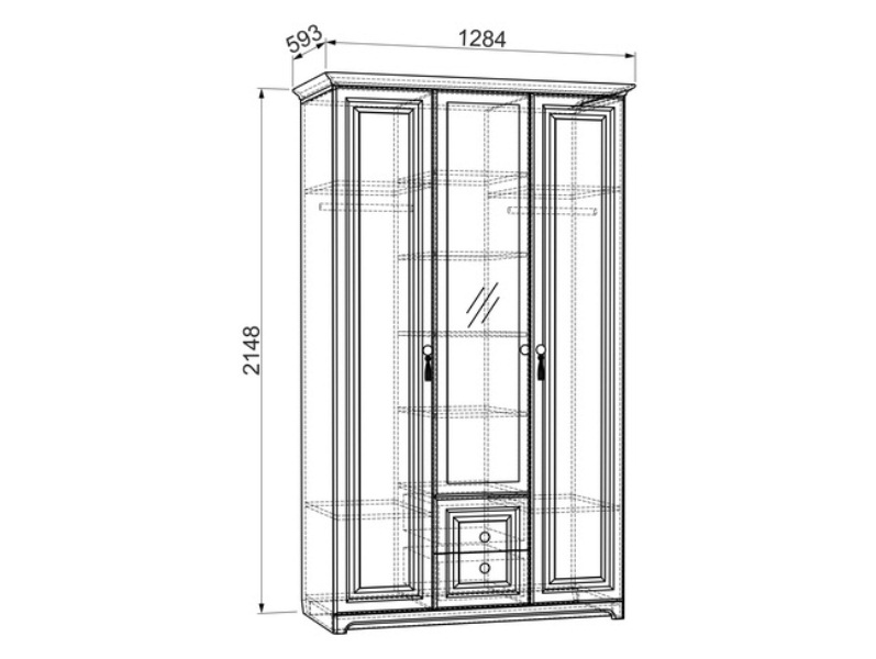 Нет ничего лучше, чем сочетание красоты и практичности. 3-створчатый шкаф «Белла» тому доказательство. Фасады шкафа выполнены в нежном оттенке джелато, дверцы украшены фрезеровкой, а ручки – декоративными кистями. Центральный отсек шкафа оснащен полками, а боковые – штангами для одежды. Выдвижные ящики прекрасно подойдут для хранения вещей.