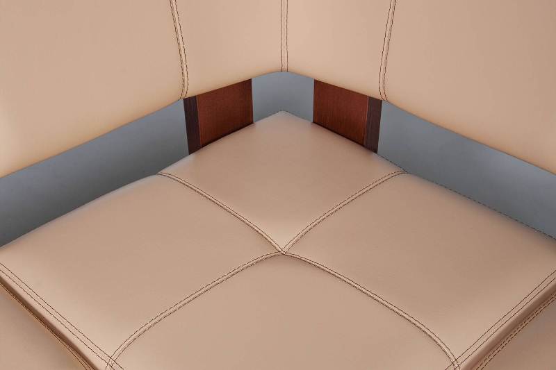 Главная особенность дизайна дивана «Борнео» — минимализм и легкость конструкции в сочетании с контрастом оттенков каркаса и обивки. Декоративную функцию берет на себя не только прошивка спинки и сиденья, но и каркас (в частности форма опор дивана).