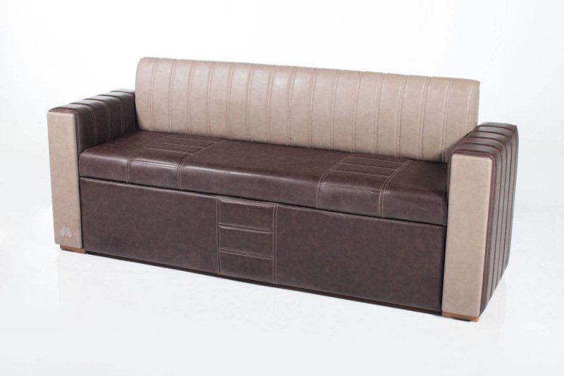 • Модель со спальным местом. Диван имеет механизм трансформации «дельфин», позволяющий получить ровную и оптимальную по площади спальную поверхность. Механизм трансформации весьма прост и требует минимальных усилий: достаточно выкатить из-под сиденья дополнительную платформу (выкатывается по направляющим) и, взявшись за специальные петли, поднять спальное место до уровня сиденья дивана. Тем самым удается получить сплошную и ровную спальную поверхность.