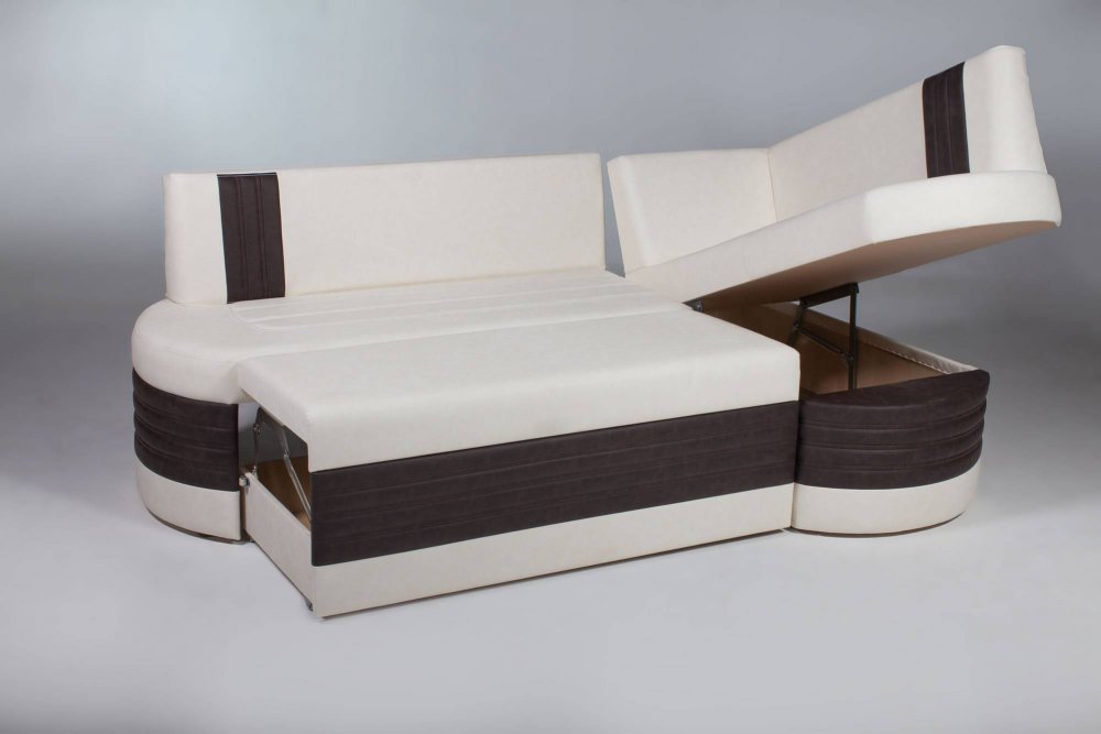 • Модель со спальным местом. Диван имеет механизм трансформации «дельфин», позволяющий получить ровную и оптимальную по площади спальную поверхность. Механизм трансформации весьма прост и требует минимальных усилий: достаточно выкатить из-под сиденья дополнительную платформу (выкатывается по направляющим) и, взявшись за специальные петли, поднять спальное место до уровня сиденья дивана. Тем самым удается получить сплошную и ровную спальную поверхность.