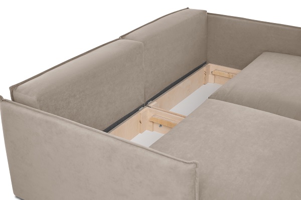 Очень практичный механизм. Для того чтобы разложить диван, нужно просто выдвинуть сидение на себя и опустить спинку, получив таким образом ровное спальное место.