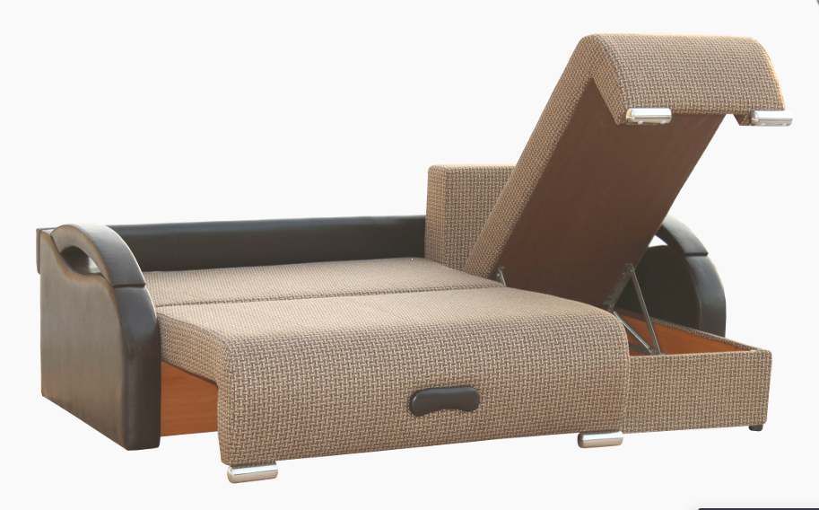 - Необходимо прикрутить ручку на верхнюю крышку дивана (2 гайки), две хромированные ножки (4 самореза), элемент скольжения (2 самореза), подлокотники на крабах (просто вставляются в пазы)