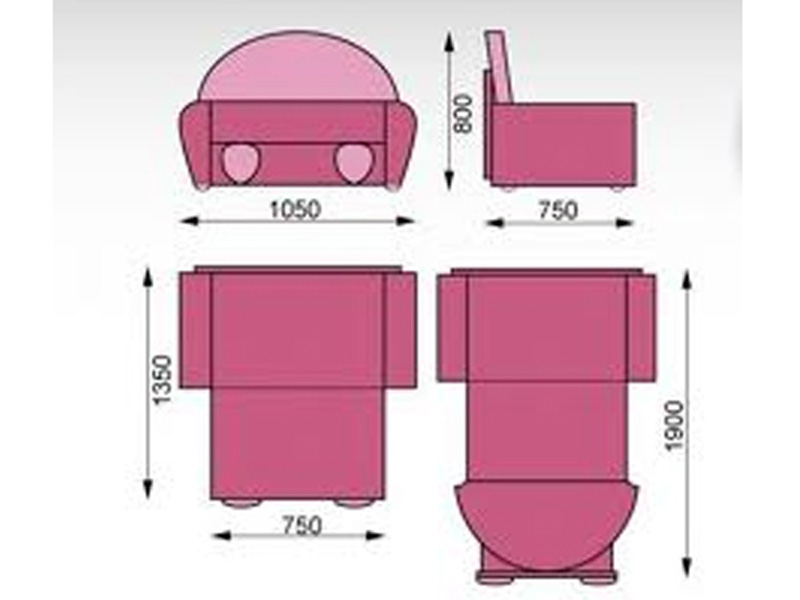 Размеры: Н800/1050/750, спальное место: 750/1900.
