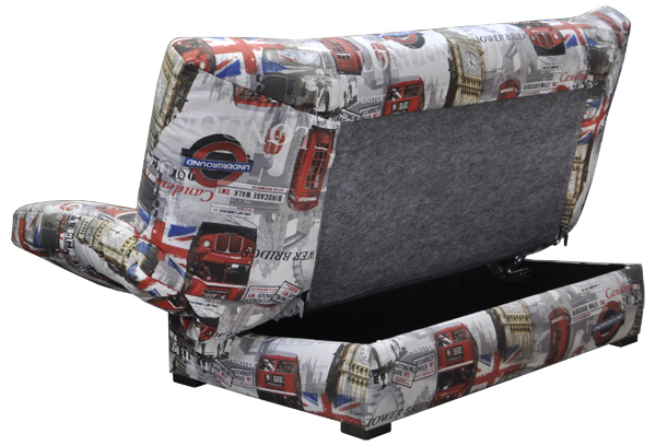 Компактный, легкий, стильный диван. Ровное спальное место. Съемный чехол спального места. Основание дивана состоит из короба на опорах, механизма трансформации и металлических рамок с латами, на которые уложен матрац. Матрас двух видов: на поролоне и на пружинном блоке (следует уточнять при заказе). Спинка при помощи трехпозиционного замка может принимать три положения: первые два предназначены для дневного отдыха, а последнее - для сна. Подлокотники конструкции основной рамы могут принимать четыре положения. В коробчатом основании дивана расположена емкость для хранения постельных принадлежностей. Механизм раскладки "клик- кляк".