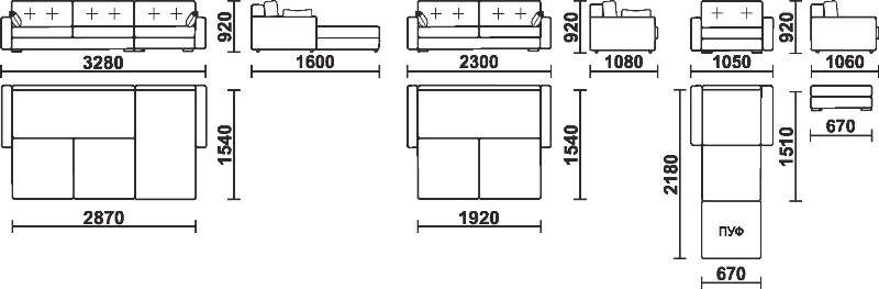 Габаритные размеры: 2300*1540*920