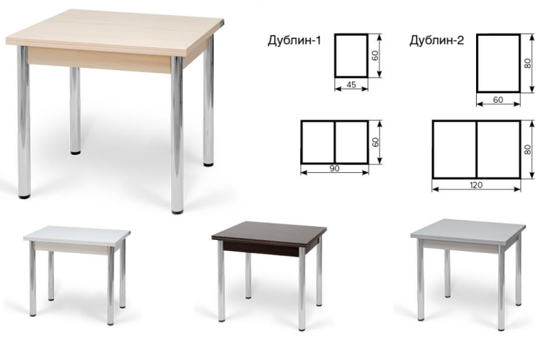 Столы этой серии имеют максимально компактную форму, рекомендуются для квартир типа «гостинка» и «хрущевка». За счет поворотно-откидного механизма раскладываются в два раза. Подстолье хромированное .