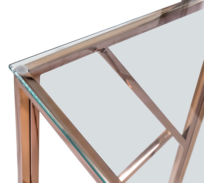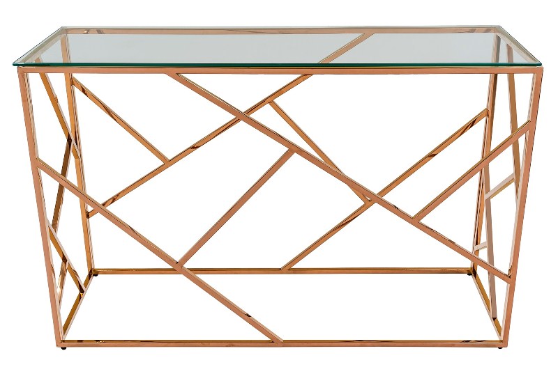 Консоль АРТ ДЕКО, прозрачное стекло, сталь розовое золото