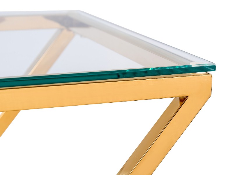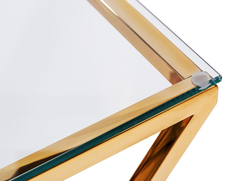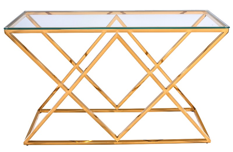 Консоль АРТ ДЕКО, прозрачное стекло, сталь розовое золото