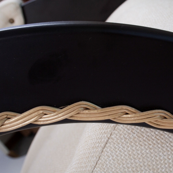 Традиционная конструкция кресла, и изящная отделка боковин придают ему респектабельность и солидность. Широкое сиденье, мягкий подголовник с подлокотниками и удобная выдвижная подножка. Декоративная косичка из натуральной лозы (изготовлена вручную).