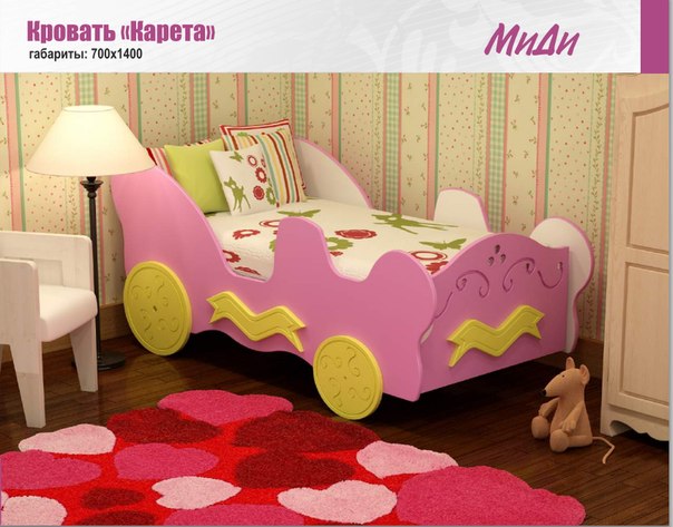 Кровать "Карета " МДФ без матраца Цвет: Розовый, а так же сиреневый глянец (имеет другую цену !!!) |