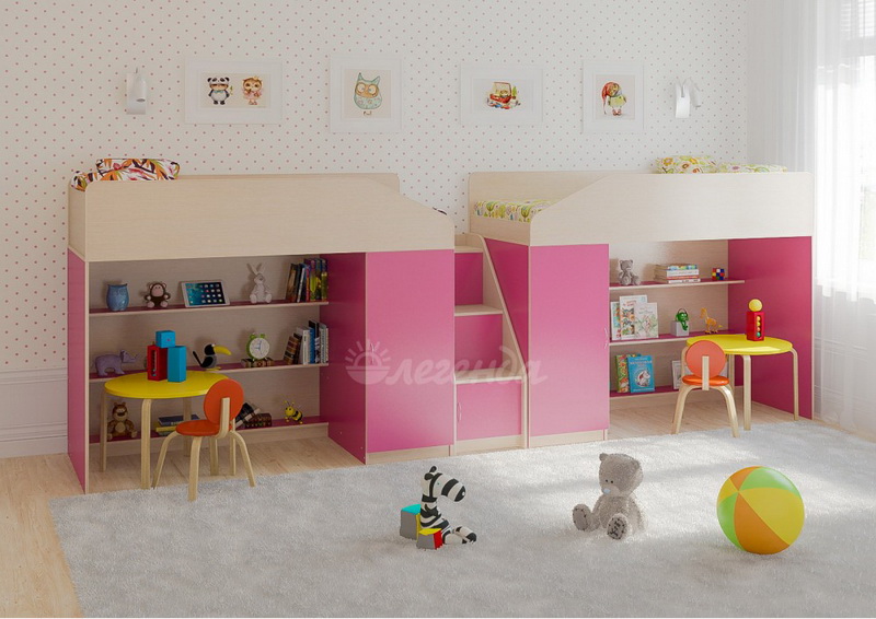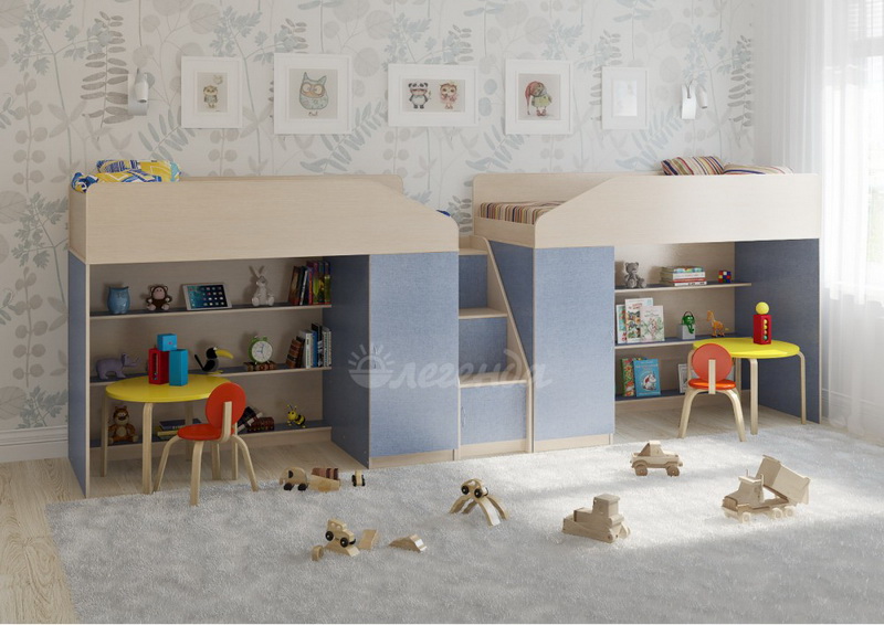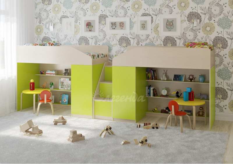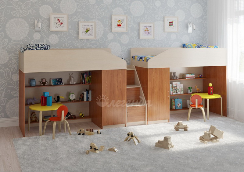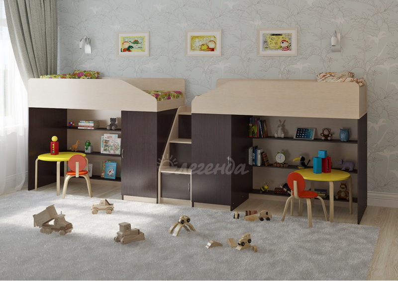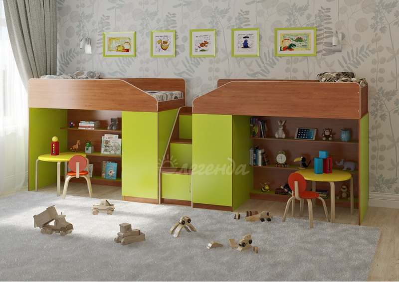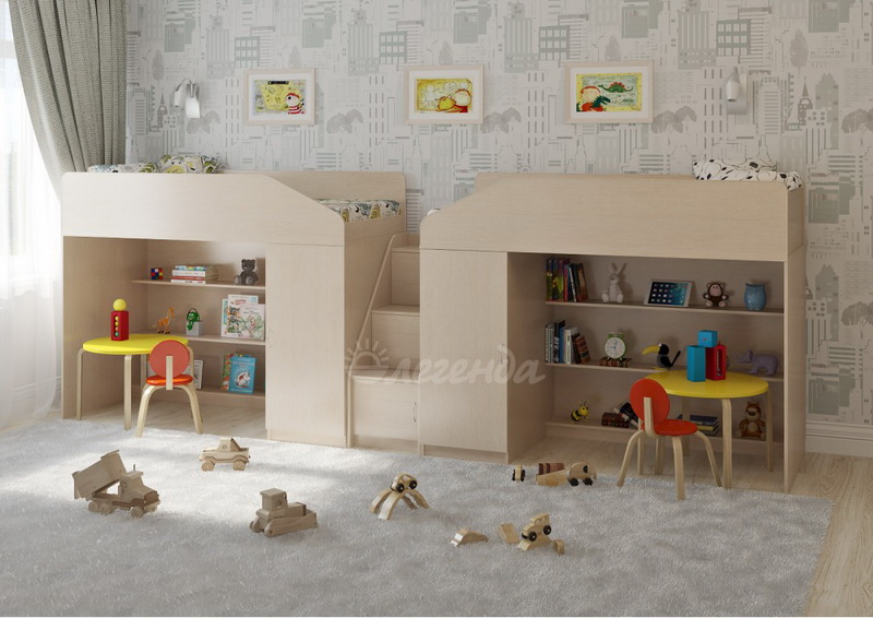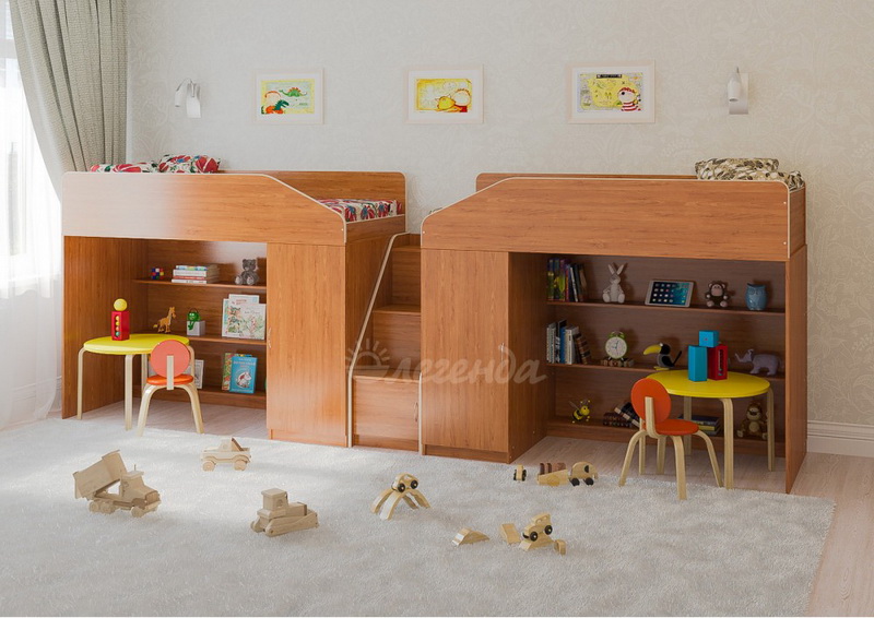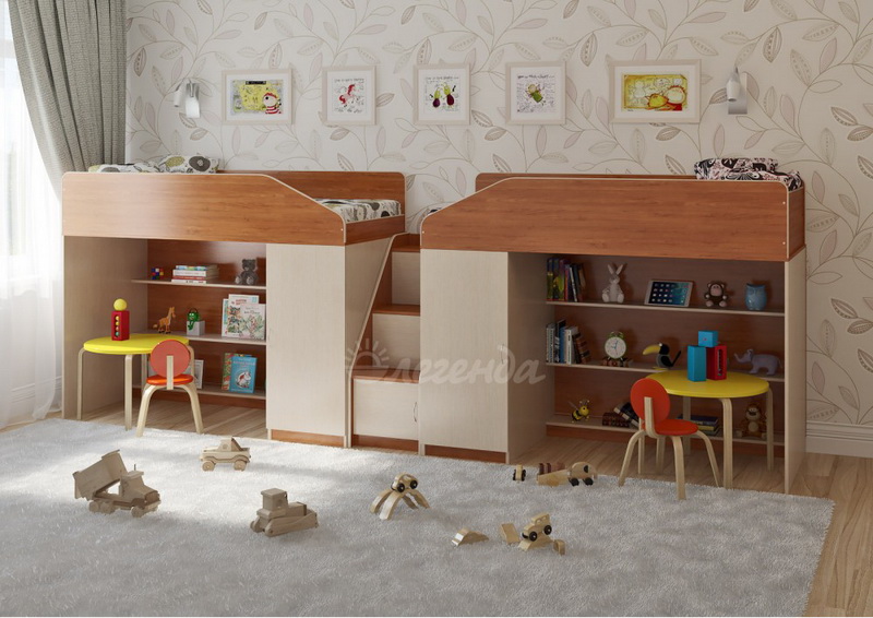 Две уютных кровати Легенда 11 с большим спальным местом размером 1800х800Под спальными местами располагаются игровые зоны – свой уголок,словно домик для каждого ребенка.