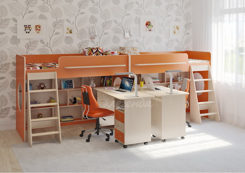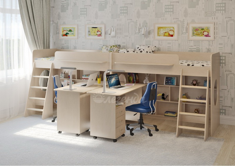 В комплект входят две кровати Легенда 26.1 - с большими спальными местами 1800х800Под спальными местами у каждого ребенка свой уютный уголок.