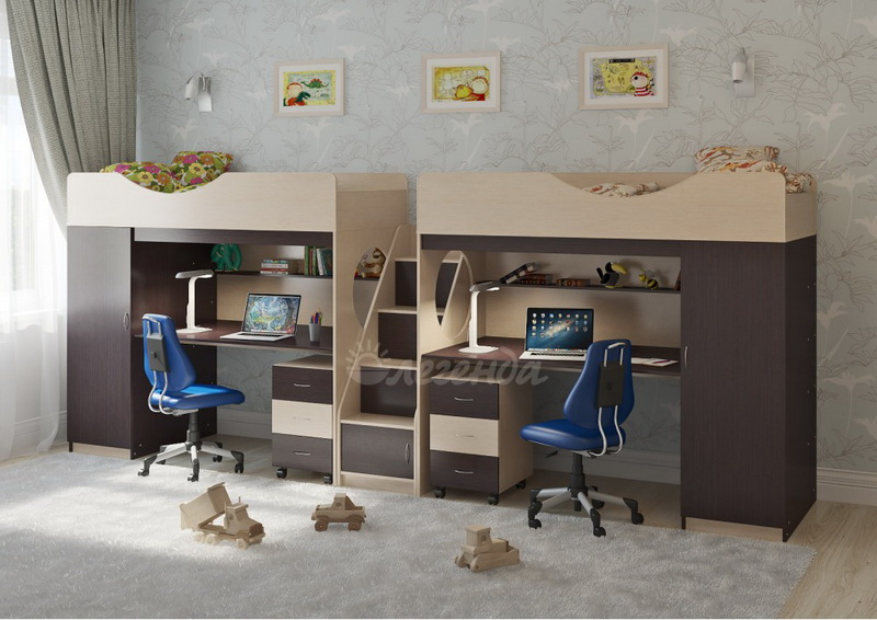 Две кровати Легенда 9 с комфортным спальным местом размером 1800х800У каждого ребенка своя учебная зона со столом под спальным местом - возможности для письменных работ.