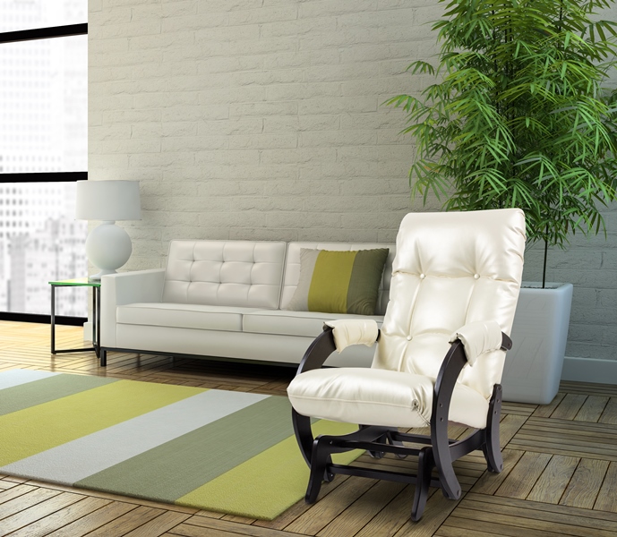 Кресло-качалка из экокожи/ткани и дерева впишется в любой интерьер: современный или классический.