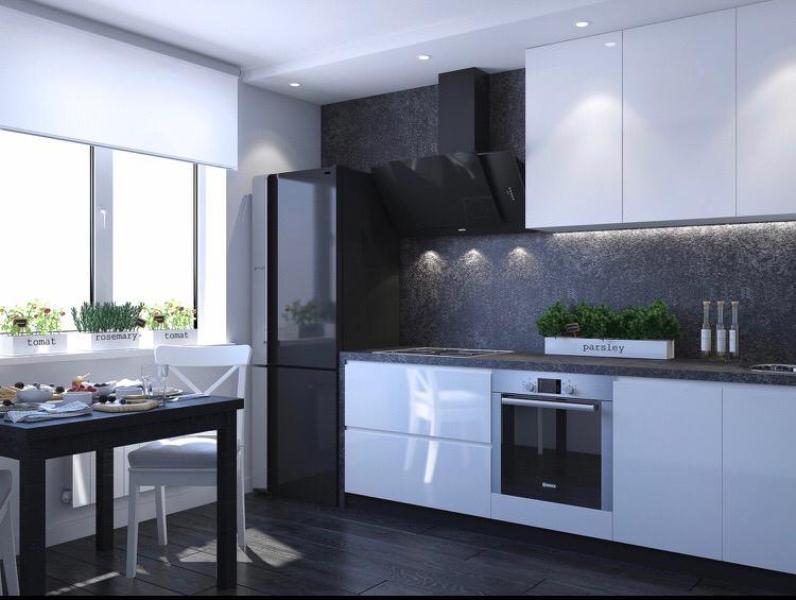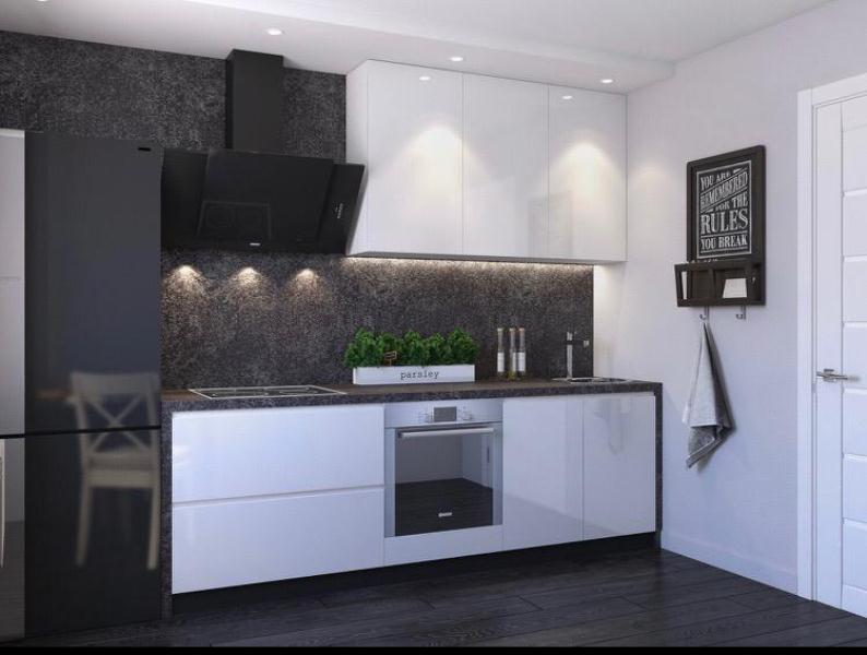 Цвет корпуса, фасада, столешницы, стекла, ручки могут быть практически любыми, цена при этом не поменяется. Кухня может быть оснащена доводчиками (Blum, Boyard).