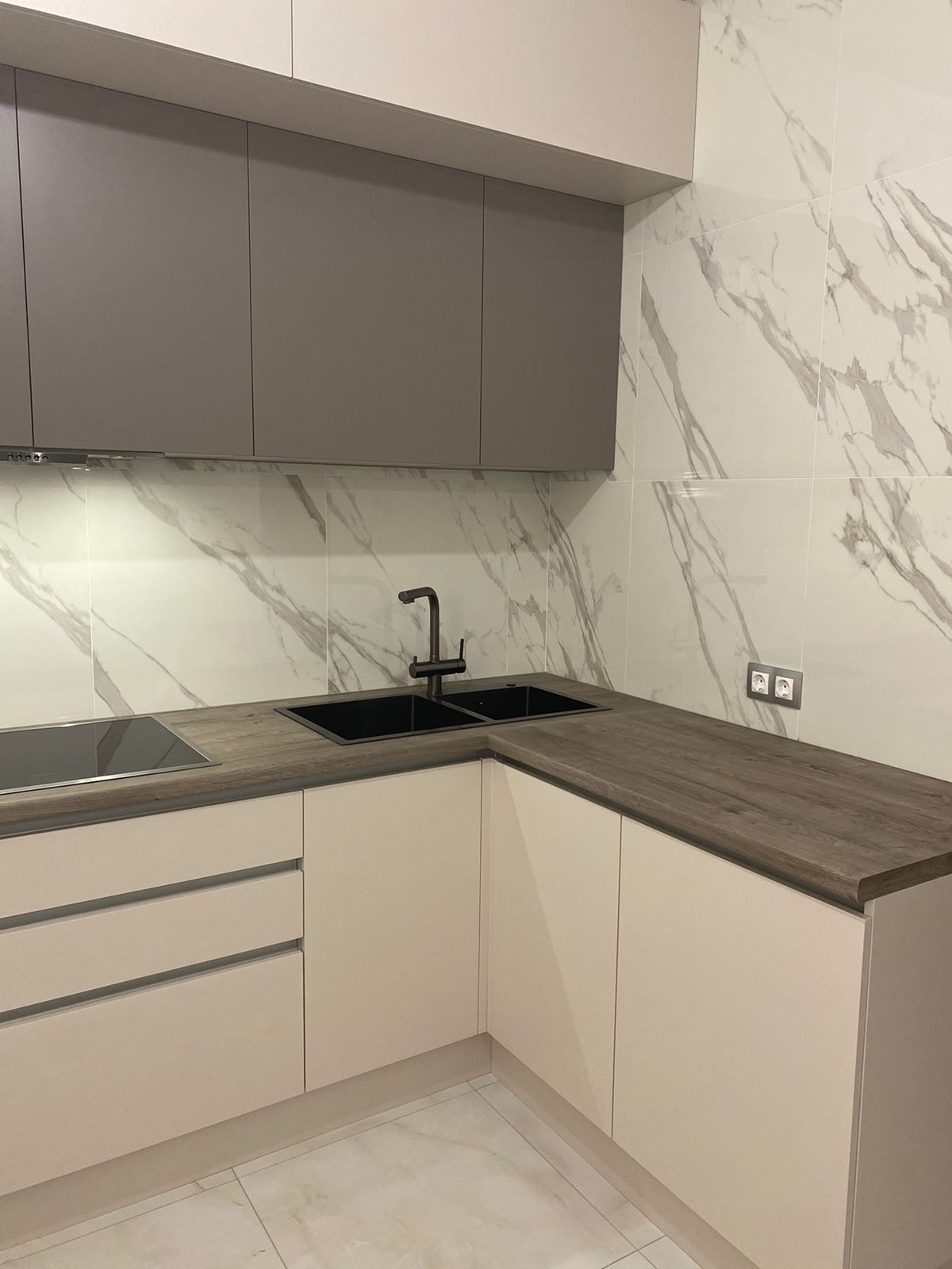 Лаконичная кухня в удачных цветах! Такое цветовое решение никогда не надоест и станет любимым местом всех членов семьи!