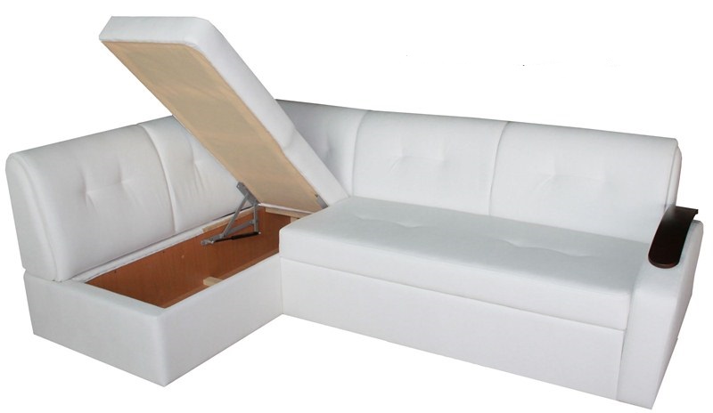 В угловой части расположен ящик для постельного белья.