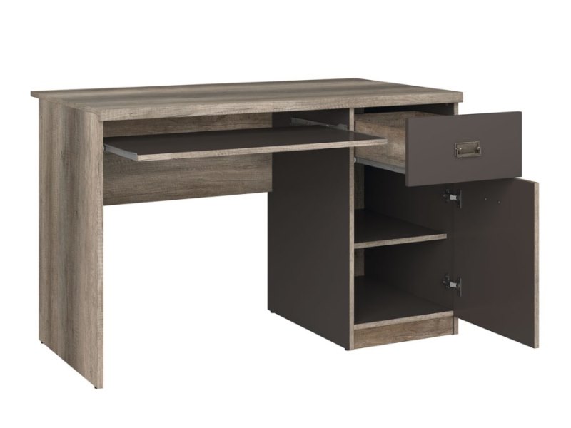 Стол разделен на 2 отделения: тумба и открытое отделение с выдвижной полкой на металлических роликовых направляющих;