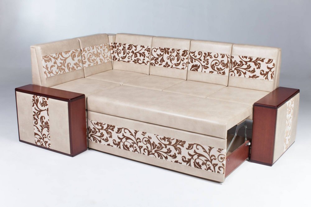 • Модель со спальным местом. Диван имеет механизм трансформации «дельфин», позволяющий получить ровную и оптимальную по площади спальную поверхность. Механизм трансформации весьма прост и требует минимальных усилий: достаточно выкатить из-под сиденья дополнительную платформу (выкатывается по направляющим) и, взявшись за специальные петли, поднять спальное место до уровня сиденья дивана. Тем самым удается получить сплошную и ровную спальную поверхность.