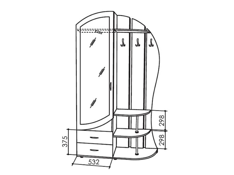 Фасады: - Зеркало; - ЛДСП 16 мм.