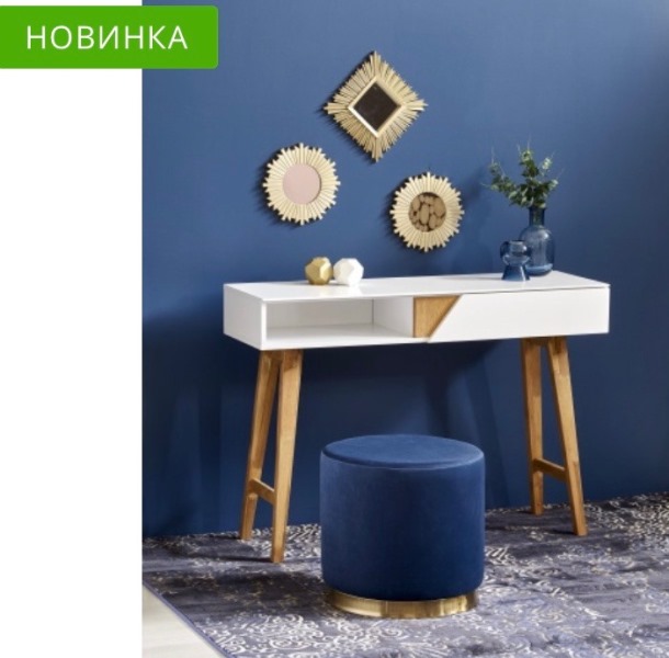 Пуф Ковет, темно-синяя обивка, каркас золото.