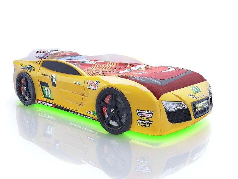Вы только посмотрите на изгибы бампера, мощные колеса, стильный дизайн – ну какой мальчик устоит перед таким подарком? Все элементы уникальной кровати-авто полностью обтекаемы, они выполнены в технике 3д и повторяют форму настоящей спортивной машины. Подарите радость своему сыну, внесите новизну и краски в его детскую, а он отблагодарит вас любовью и заботой. Замените обычную унылую кровать на современную, стильную и оригинальную спортивную машину, которая будет радовать ребенка на протяжении нескольких лет.