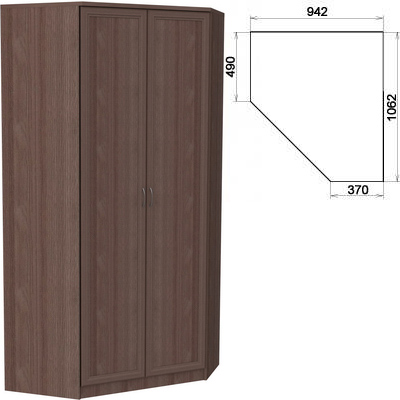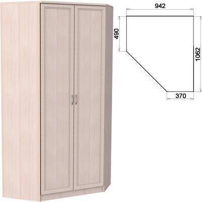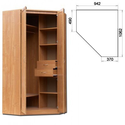 Большой, вместительный, практичный угловой шкаф со штангой, полками и двумя ящиками – это именно тот предмет мебели, который нужен каждой семье. Такой шкаф можно разместить в спальне и гостиной, в большом коридоре и детской комнате. Внутри шкаф оборудуется штангой для одежды, полками для белья, аксессуаров, двумя ящиками, в которые можно складывать все необходимое. По желанию клиента, шкаф собирается как на левую, так и на правую сторону, в зависимости от его расположения в комнате и удобства.