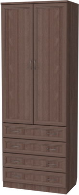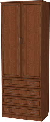 Очень практичная модель шкафа, которая представляет собой комбинацию платяного шкафа и комода с четырьмя вместительными ящиками. Верхняя часть оборудована штангой, на которую можно вешать костюмы, платья, в общем, все то, что носится сейчас. В ящики комода можно положить аксессуары, белье, любые мелочи.