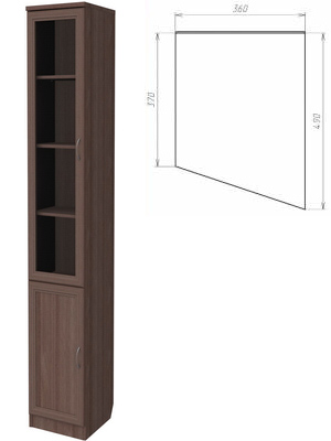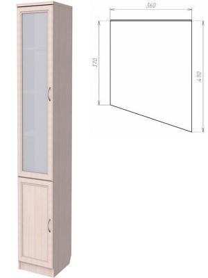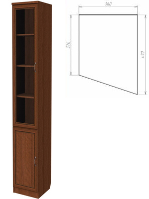 Шкаф разделен на две отдельные части. Верхняя часть предназначается для хранения книг. Дверь верней части состоит из стекла, а книги за стеклянной дверкой смотрятся очень элегантно. Верхняя часть обладает четырьмя полочками, одинаковыми по площади, равноудаленными одна от одной. На полках можно поместить большое количество книг, весьма удобным является то, что полочки достаточно велики для хранения не только обычных по размеру книг, но и больших печатных изданий.
