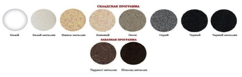 Белый, Белый металлик, Ваниль металлик, Серый, Бежевый, Песочный, Черный, Черный металиик.