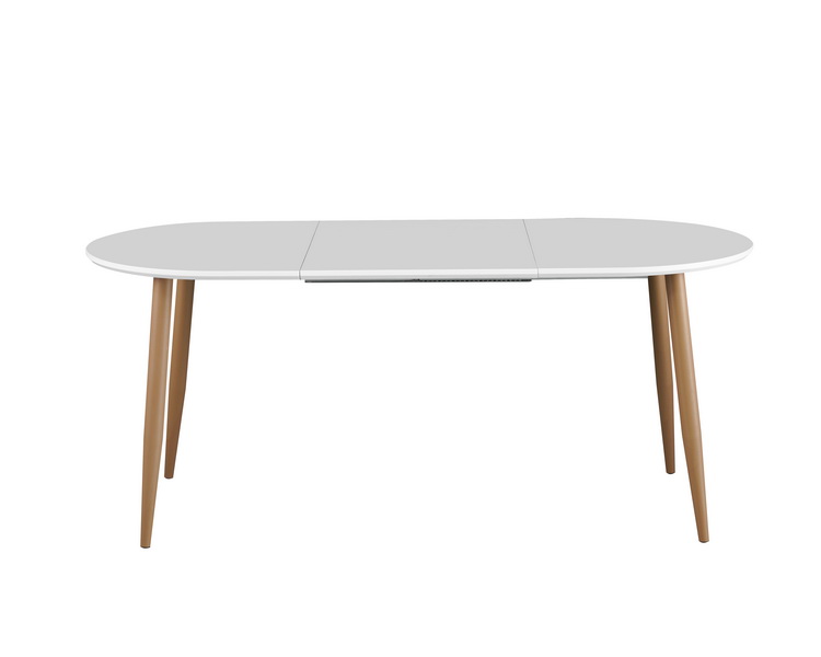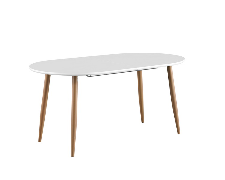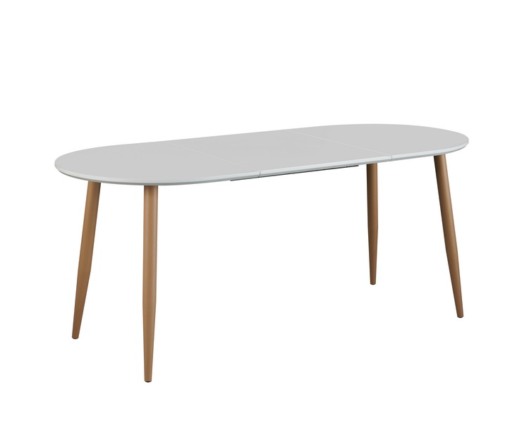 Цвет столешницы - белый, ножки металлические, покрашены в цвет светлого дерева.