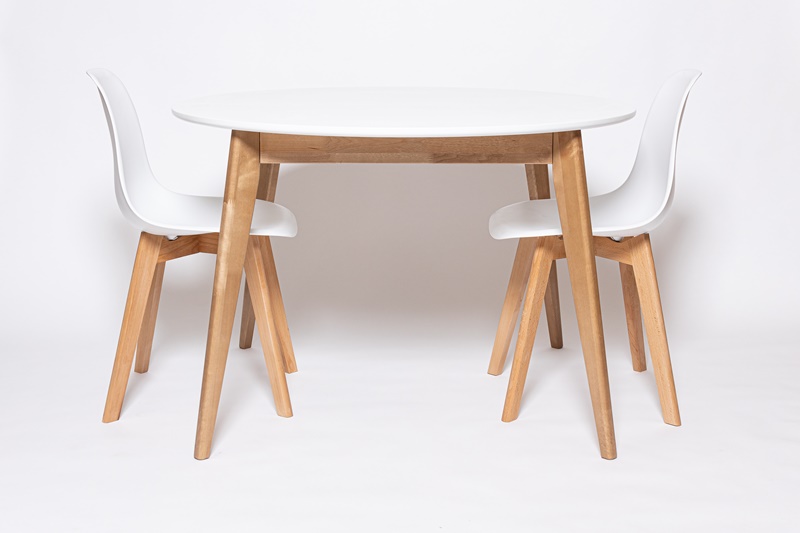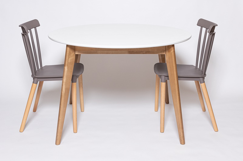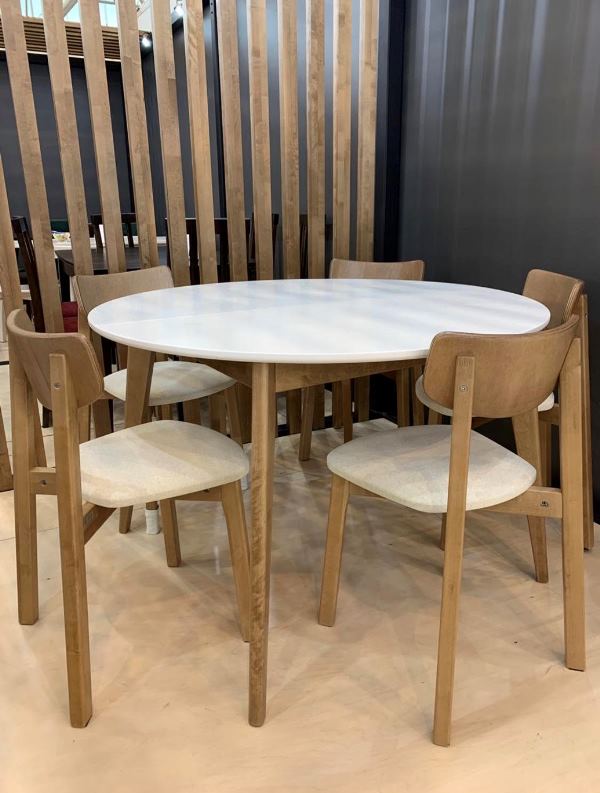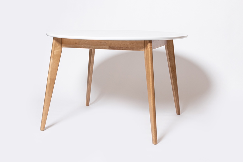 Стол Орион 1000*1000 Дуб натуральный, морилка, ЛМДФ 22, шпон Дуб, Белая эмаль.