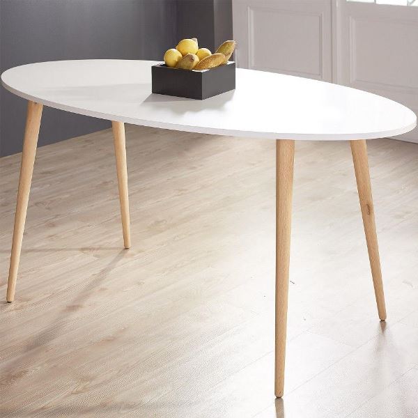 Столешница выполнена из экологичного матового МДФ, по износостойкости и долговечности превосходящего натуральную древесину. Белый цвет столешницы привносит в пространство ощущение чистоты и свежести. Ножки из цельного массива светлого бука и геометрические металлические подпорки делают стол невероятно устойчивым и прочным. Благодаря натурального расцветке и округлой форме стол в стиле Eames DSW идеально впишется как в жилое помещение, так и в общественную зону кафе или ресторана, особенно хорошо подчеркнув интерьер в стиле минимализм или хай-тек.