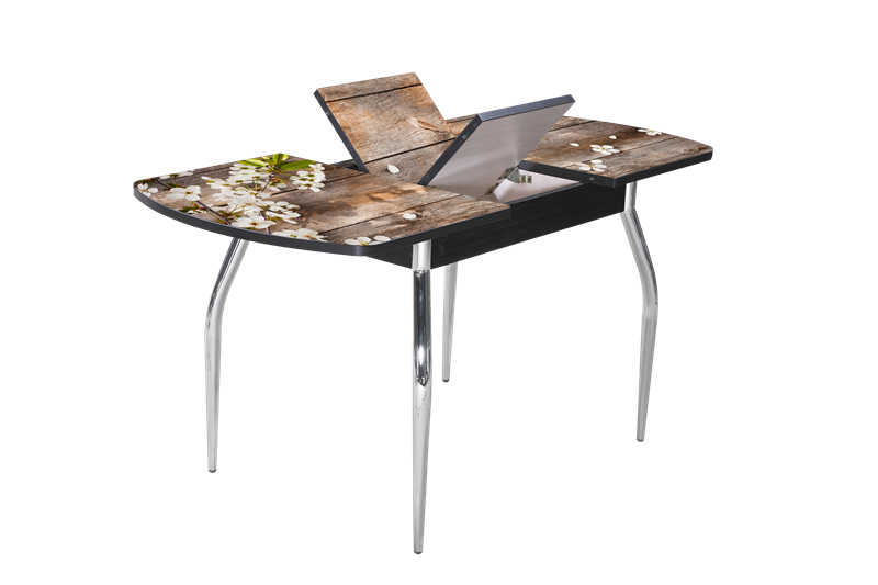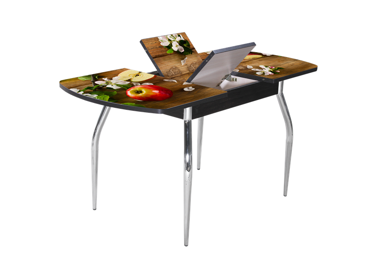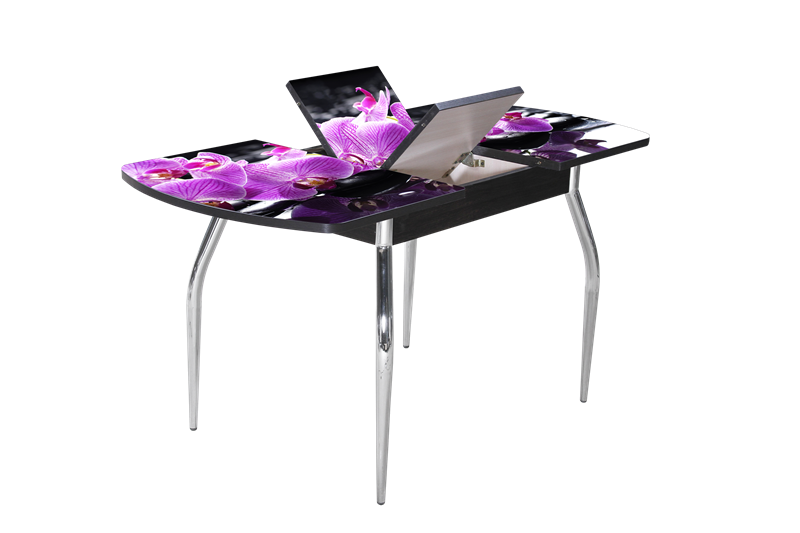 В производстве столов используется механизм синхронного раздвижения столешницы и центральная вставка «бабочка»-стекло. Стол раздвижной 1100(1450)*700. Столешница 26мм. Стекло закаленное, ударо- и жаропрочное. При производстве столов применяется УНИКАЛЬНАЯ ТЕХНОЛОГИЯ окрашивания вжигаемой в стеклянную поверхность керамической краски, которая становится его частью и не снимается даже под механическим, химическим воздействием.