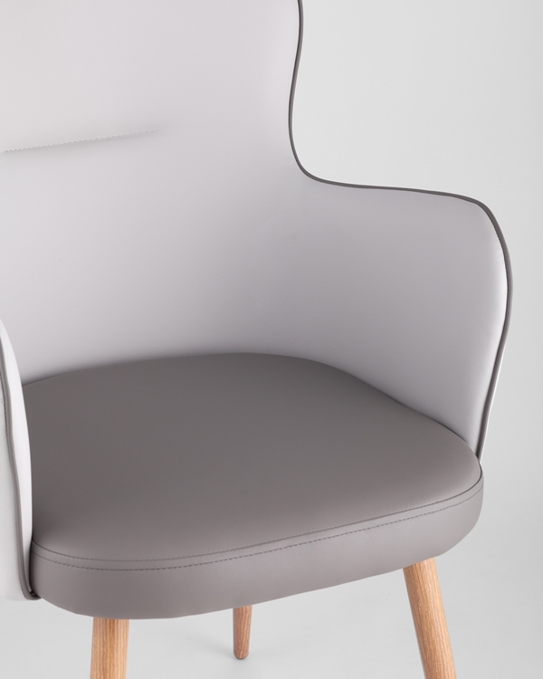 Стильный и мягкий стул Космея имеет широкую эргономичную спинку и удобные подлокотники. Обивкой послужила высококачественная PU кожа. Ножки стальные с принтом под дерево.