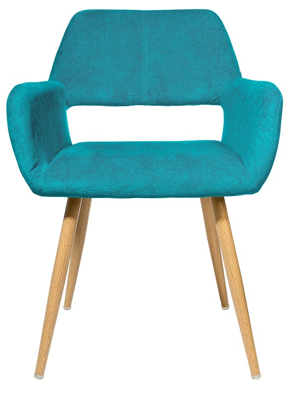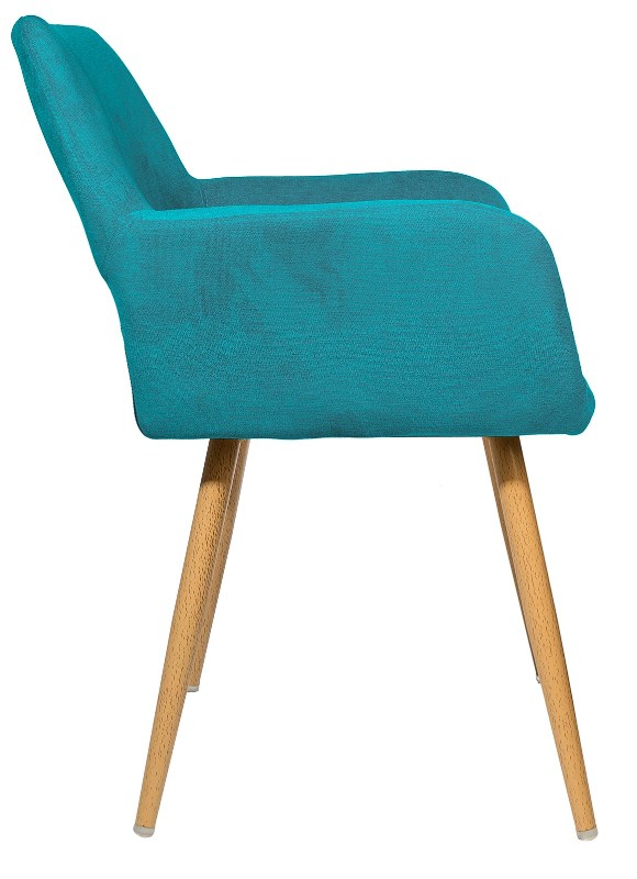 Стильный и мягкий стул имеет широкую эргономичную спинку и удобные подлокотники. Обивкой послужила высококачественная плотная ткань. Ножки стальные с принтом под дерево.