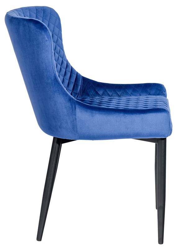 Мягкое прямоугольное сиденье с невысокой спинкой анатомической формы подарит комфорт и уют. В качестве обивки используются прочные износостойкие материалы с декором в виде ромбов. Прямые металлические ножки,  имеют нестандартную форму в виде перевернутого конуса, поэтому обеспечивают хорошую устойчивость и делают стул оригинальным. Изделие прекрасно смотреться как отдельный предмет мебели, так и в комплекте с обеденным столом.