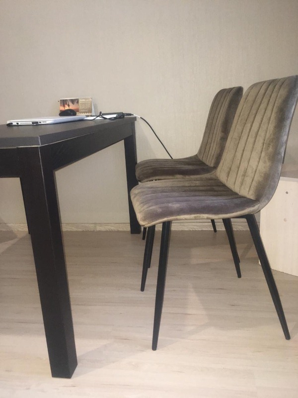 Сидение-вельвет, ножки-металл,окрашенный в черный цвет.