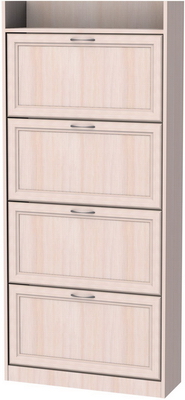 Эта модель может стать украшением даже небольшого по габаритам помещения, поскольку обладает оптимальными размерами и при этом – большой вместительностью. В этой тумбе может одновременно храниться до двадцати пар разнообразной обуви. Кроме того, в нее поместятся и различные аксессуары, такие как перчатки, зонты, обувная косметика и средства по уходу за обувью. Четыре раскладных ящика, разделенные на две секции каждый, позволят размещать комплекты обуви свободно. Ни пыль, ни грязь, ни домашние животные в этой тумбе Вашей обуви не страшны. Ну и, конечно, она идеально поддержит порядок в прихожей. Ведь обувь теперь не будет стоять на полу или на открытой полке, где ее могут обозревать все, кто посещает Ваш дом. Порядок и уют станут Вашими спутниками, и будут обеспечивать хорошее настроение.