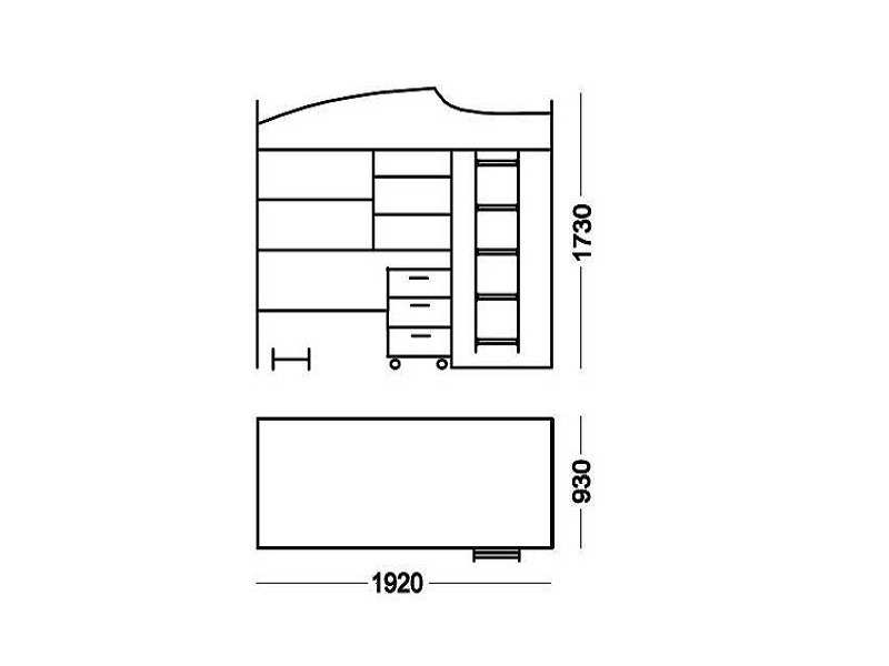 Здесь присутствует полноценный рабочий стол, вместительный шкаф с двумя отделениями (отделение со штангой и отделение с полками) для одежды и вещей.