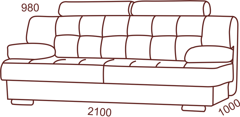 Габаритные размеры дивана: 2100*1000*980 мм.