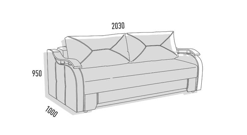 Спальное место дивана: 1950 х 1420 мм.