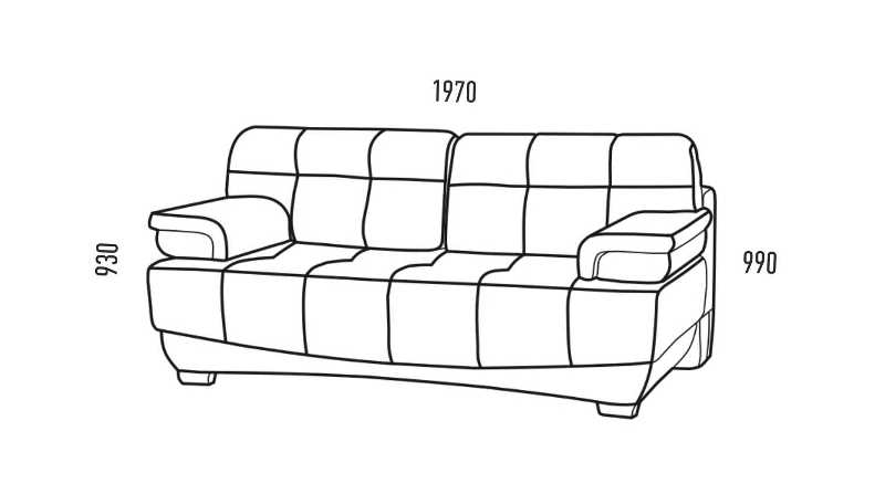Спальное место дивана: 1990 х 1500 мм.